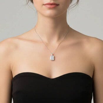 SKU: SJ10601ct Emerald Cut Lab Grown Diamond Pendant Necklace in 10K White Gold – CVD Certified Solitaire Jewelry for Women IGI Certified