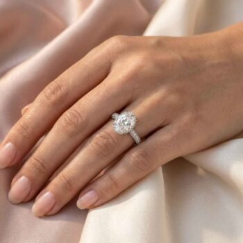 SKU: SJ13452.55 CT Oval Cut Lab Grown Diamond Halo Engagement Ring with Pavé Band – VVS1 DE Diamond Silver Ring $1,083.00 – $2,145.00Price range: $1,083.00 through $2,145.00