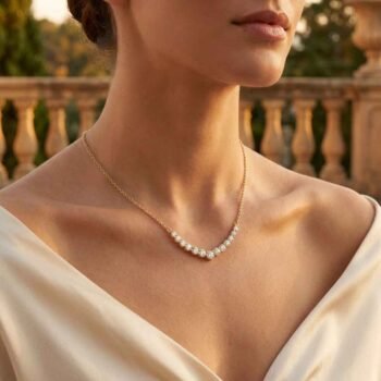 SKU: SJ12963.60 CTW Lab Grown Diamond Curved Chevron Necklace – EF VS1 Round Cut – 18K Gold over Silver