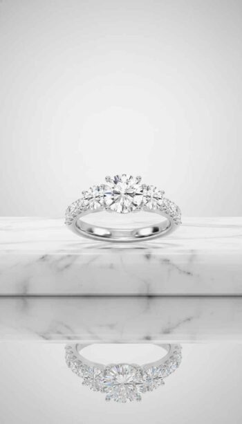 SKU: SJ125714K Gold 2.50 ctw Round Lab Diamond Three Stone Pavé Engagement Ring $2,210.89 – $4,038.63Price range: $2,210.89 through $4,038.63