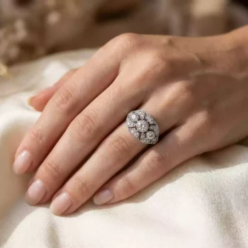 SKU: SJ13580.98 CT Round Lab Grown Diamond Art Deco Cluster Halo Engagement Ring E VS1 Certified Vintage Style Ring