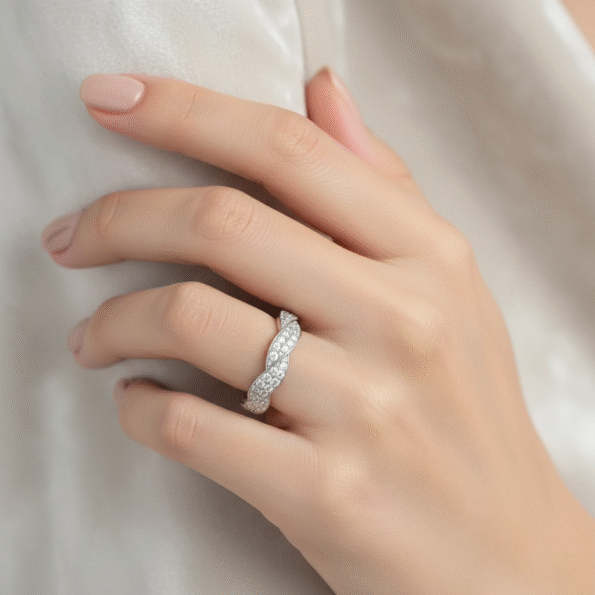 0.50–1.50ctw Lab Grown Diamond Braided Eternity Band in 10K White Gold – CVD Twisted Pavé Ring for Women (SGL Certified)
