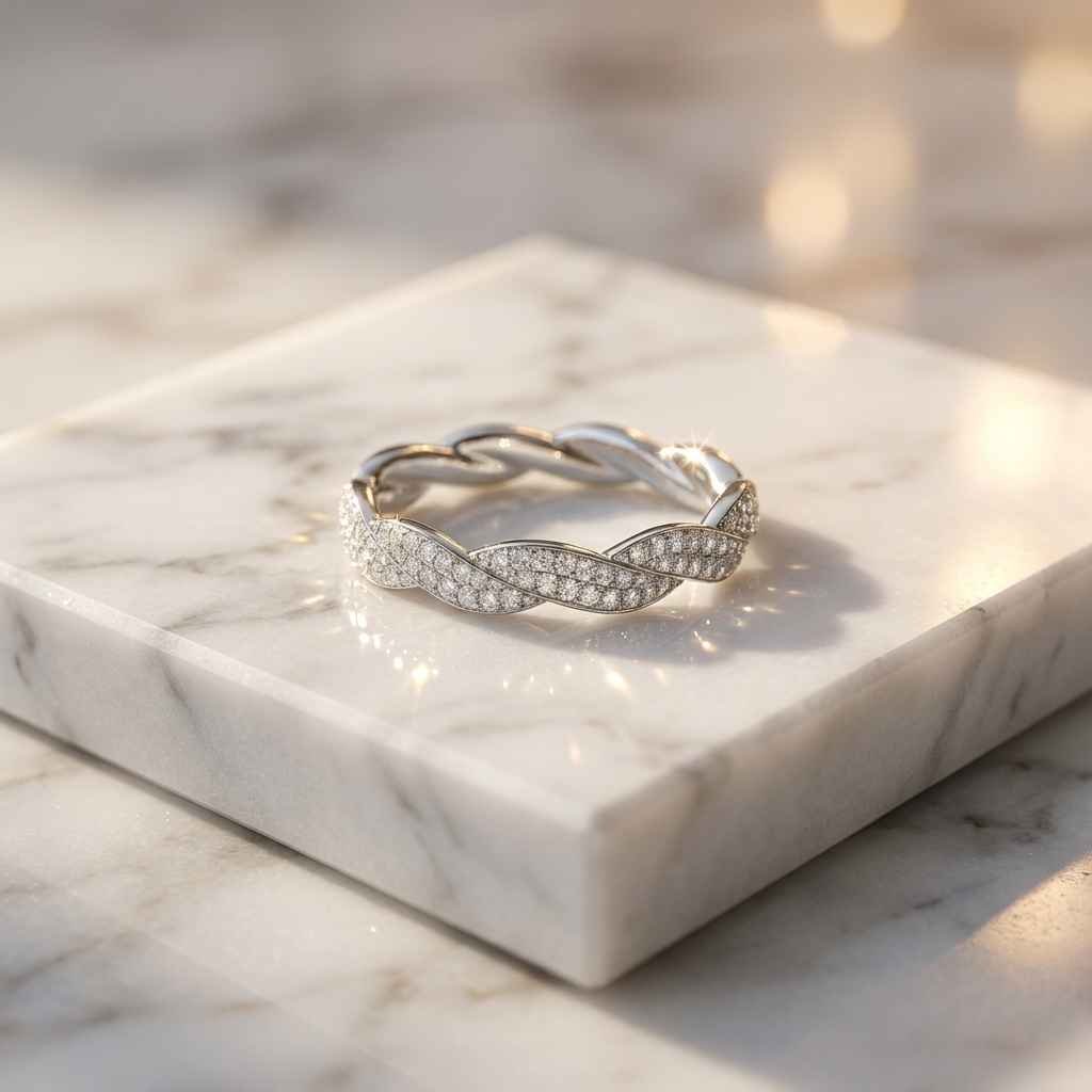 0.50–1.50ctw Lab Grown Diamond Braided Eternity Band in 18K Silver – CVD Twisted Pavé Ring for Women