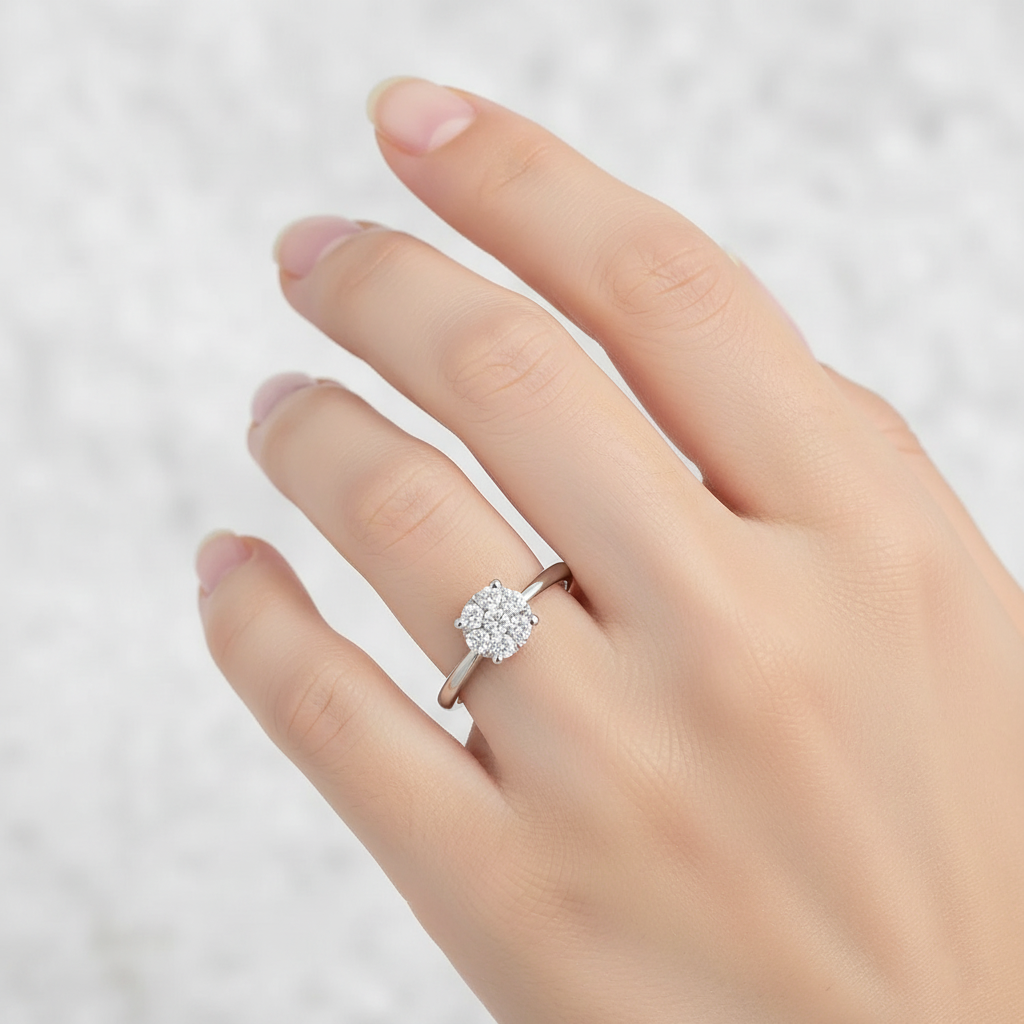 0.80 CTW Round Cluster CVD Diamond Ring in 10K/14K/18K White Gold for Women IGI Certified