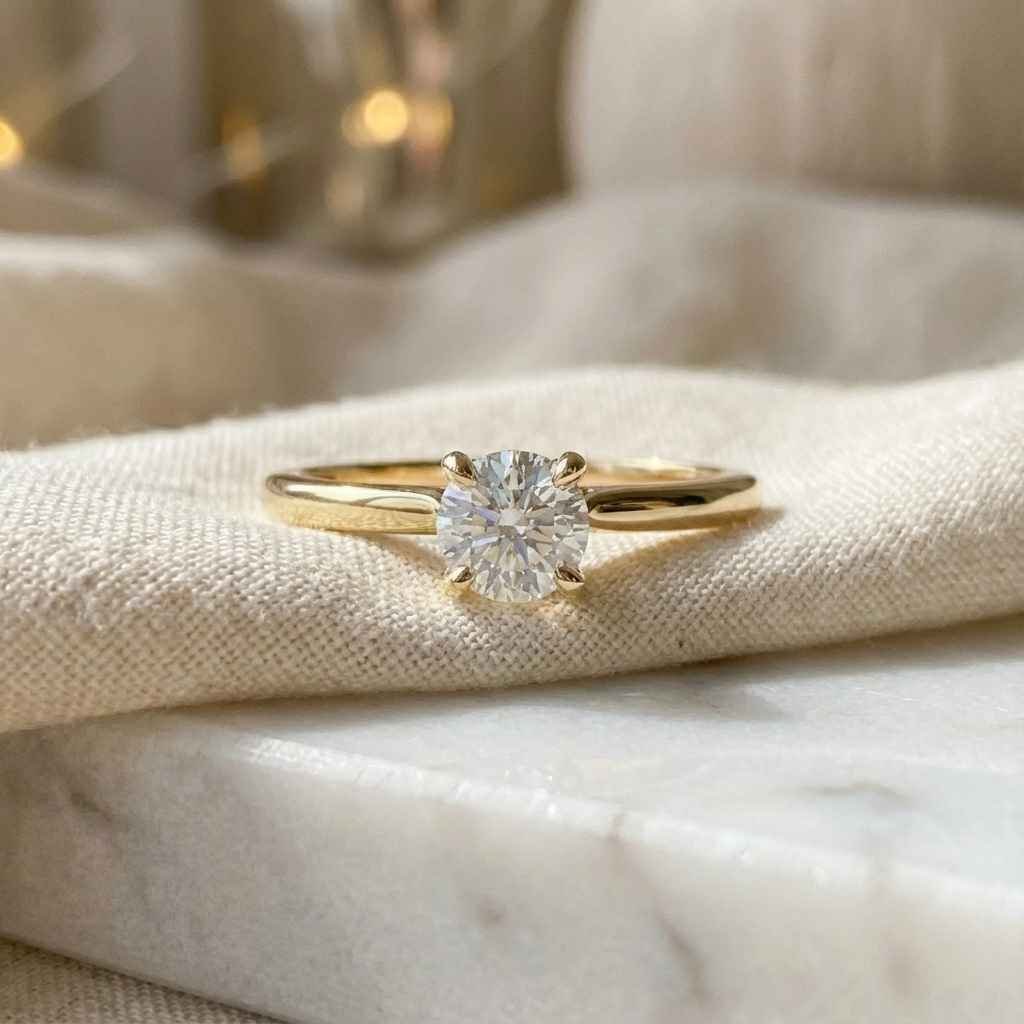 1.0 Ct Round Cut Solitaire Lab Diamond Engagement Ring in Gold IGI Certified