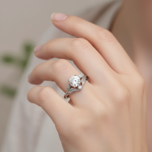 1.02 CTW Round Cut CVD Diamond Leaf Engagement Ring in 10K White Gold | Nature-Inspired Design | SGL Certified