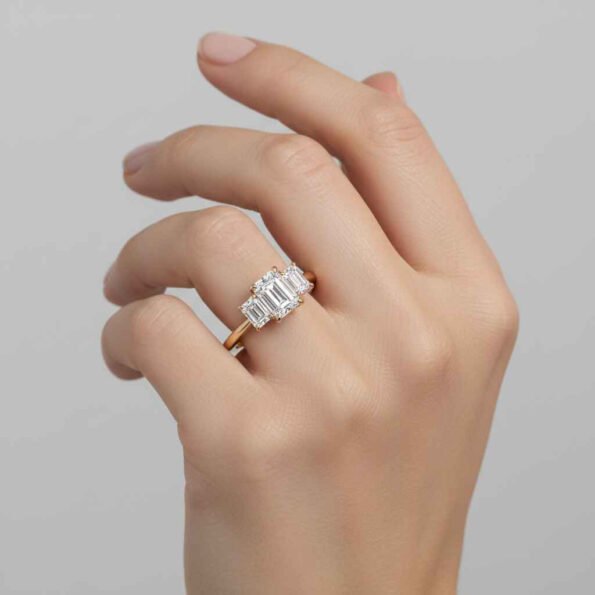 1.0ct Emerald Cut Three Stone Diamond Engagement Ring in Gold