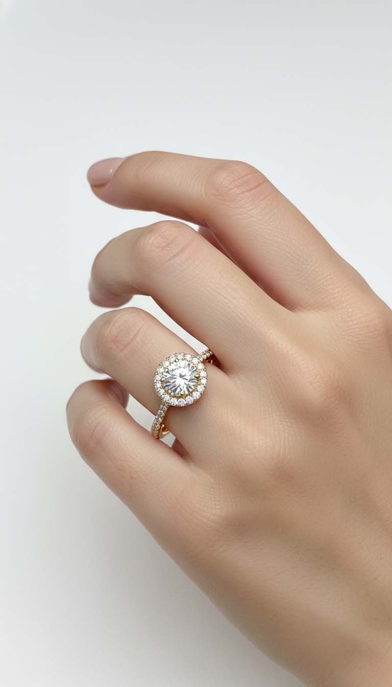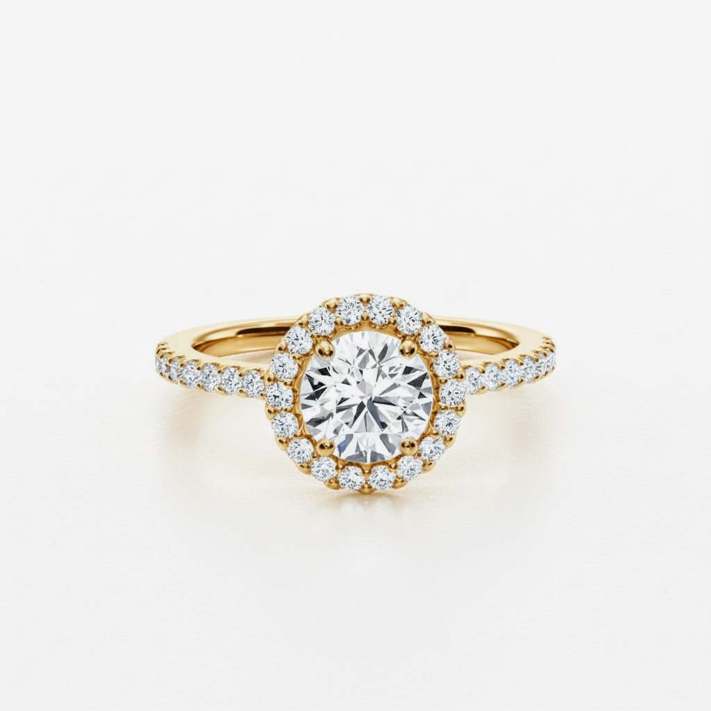Experience breathtaking sparkle with this 1.26ctw round lab-grown diamond halo ring from shopneez. This exquisite ring features a brilliant 1.03ct center stone, surrounded by a radiant halo of diamonds.
