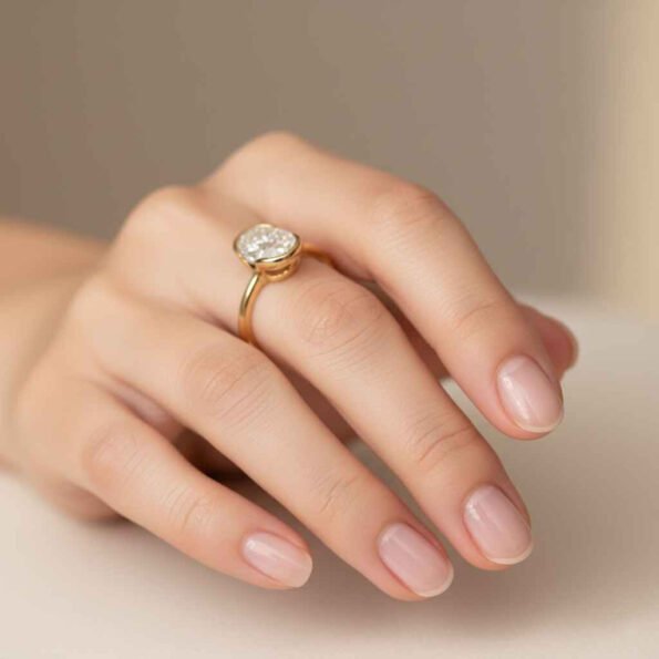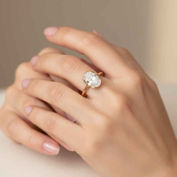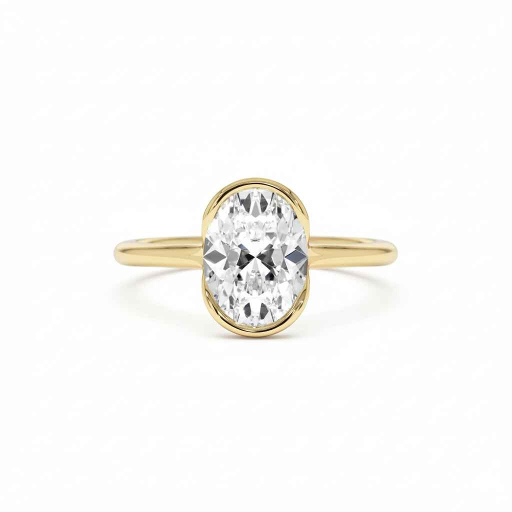 1.50 Ct Oval Diamond Bezel Engagement Ring in 14K Gold