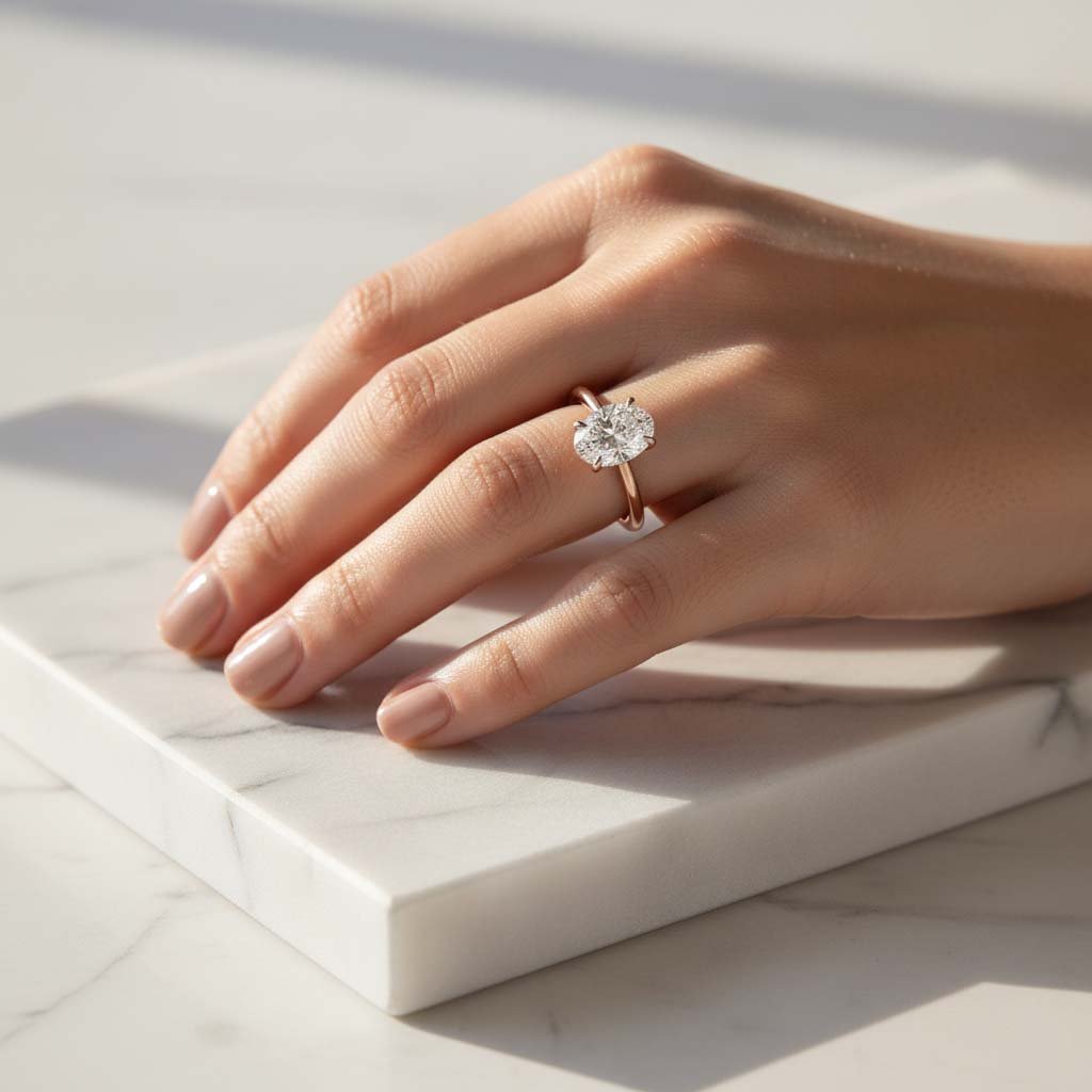 14K Gold 1.60 ctw Oval Lab Grown Diamond Minimalist Solitaire Engagement Ring