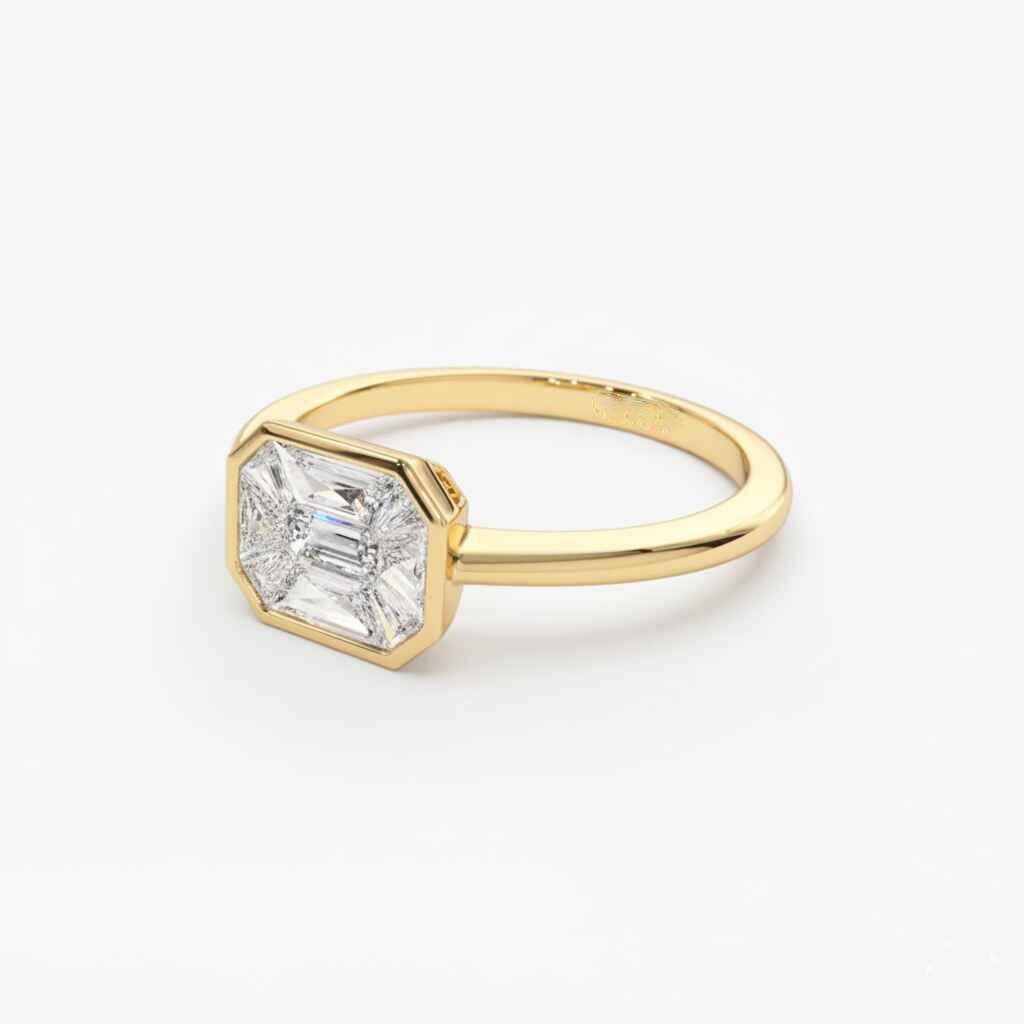 14K Gold 2.00 ctw Emerald Illusion Pie Cut Lab Grown Diamond East-West Bezel Ring
