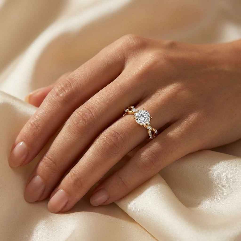 14K Gold 2.40 ctw Round Lab Diamond Marquise Twist Pavé Engagement Ring