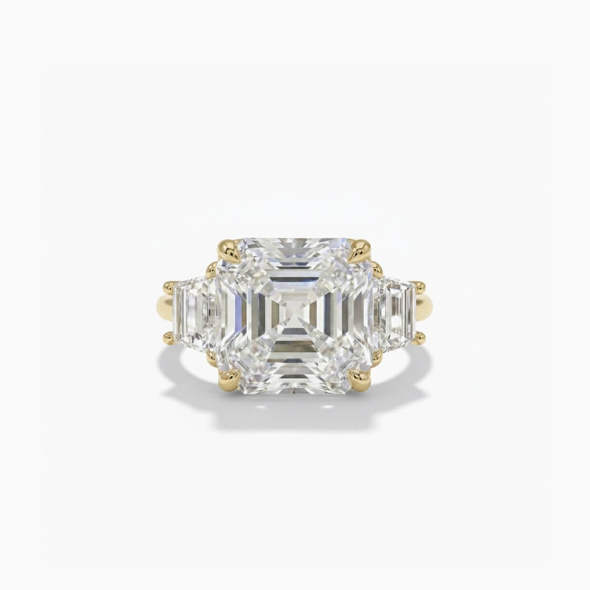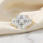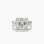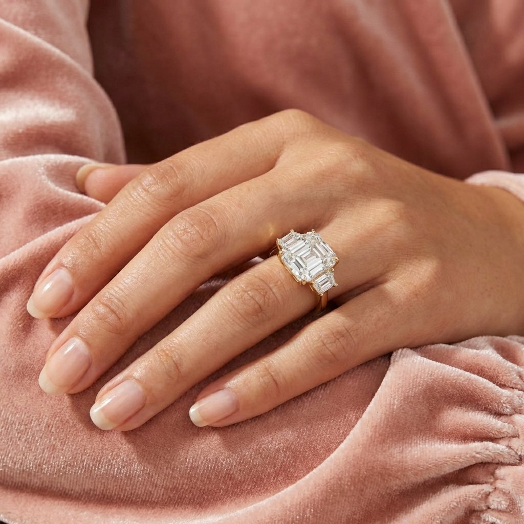 Experience pure luxury with this breathtaking 6.00 total carat weight (ctw) Three Stone Engagement Ring. The magnificent Asscher Cut center diamond is perfectly complemented by two sleek Trapezoid Cut side diamonds, all set in rich 14K Gold (available in 10K/14K/18K). This combination of step-cuts creates a spectacular display of light and geometry, offering unparalleled brilliance and sophistication. This ring is a true statement piece, symbolizing the Past, Present, and Future. All stones are CVD Lab Grown Diamonds of exceptional quality, boasting near-perfect EF Color and VS1 Clarity, providing an ethical, conflict-free, and dazzling choice for your commitment.