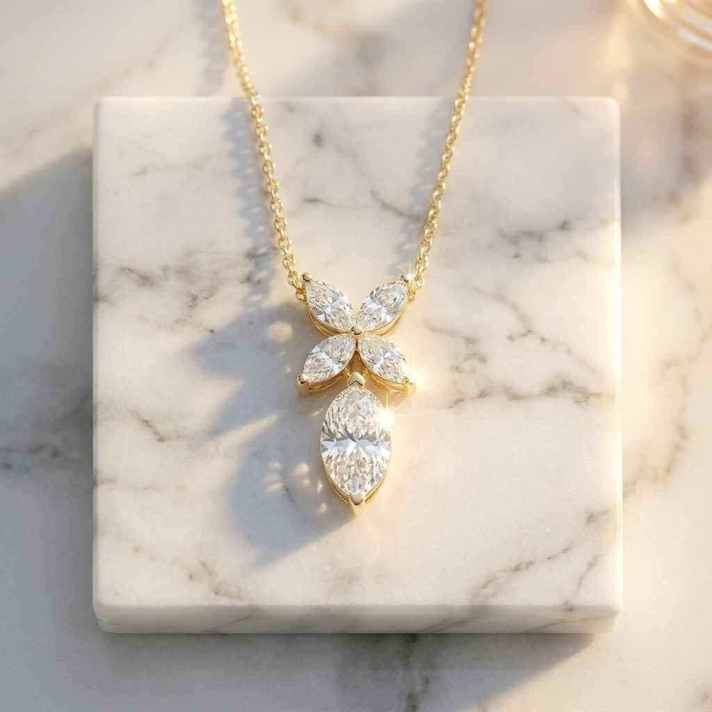 Capture the essence of nature’s beauty with this exquisite 1.50 total carat weight (ctw) Marquise Lab Grown Diamond Pendant. The design features a delicate butterfly-inspired cluster of marquise-cut stones that gracefully transition into a stunning, elongated marquise drop. Each stone is a premium CVD Lab Grown Diamond with an exceptional EF Color and eye-clean VS1 Clarity, offering a brilliant and ethical sparkle. Handcrafted in polished 925 Silver, this pendant combines a whimsical aesthetic with high-end luxury. It is a perfect statement piece for those who appreciate unique, sustainable fine jewelry.