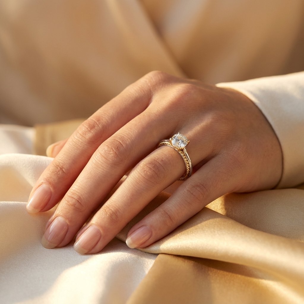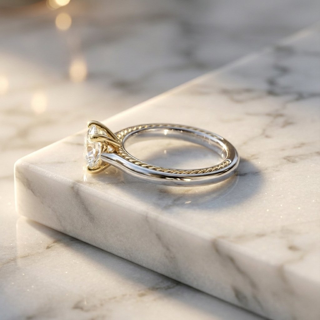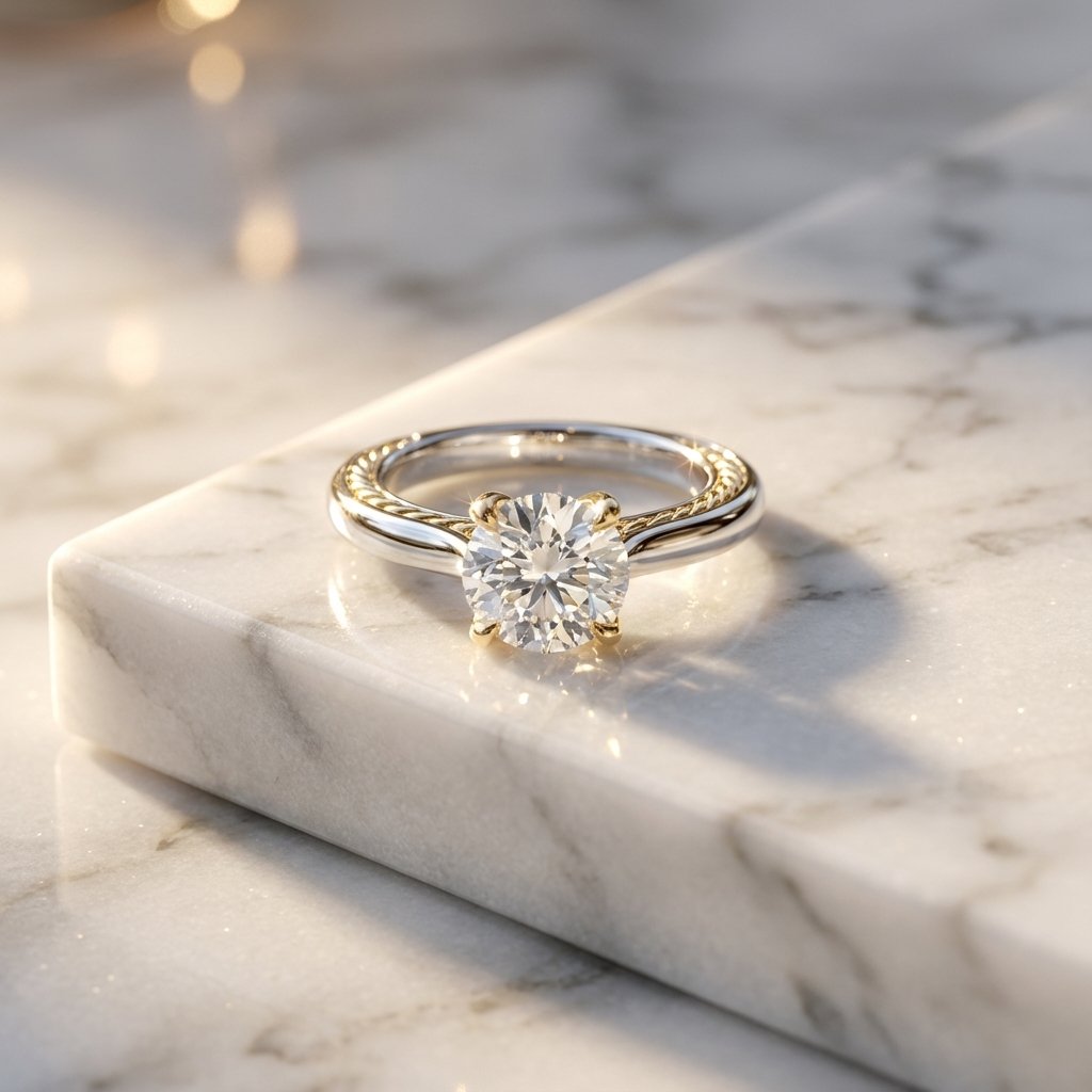 925 Silver Two-Tone 1.5 ctw Round Lab Diamond Textured Solitaire Ring