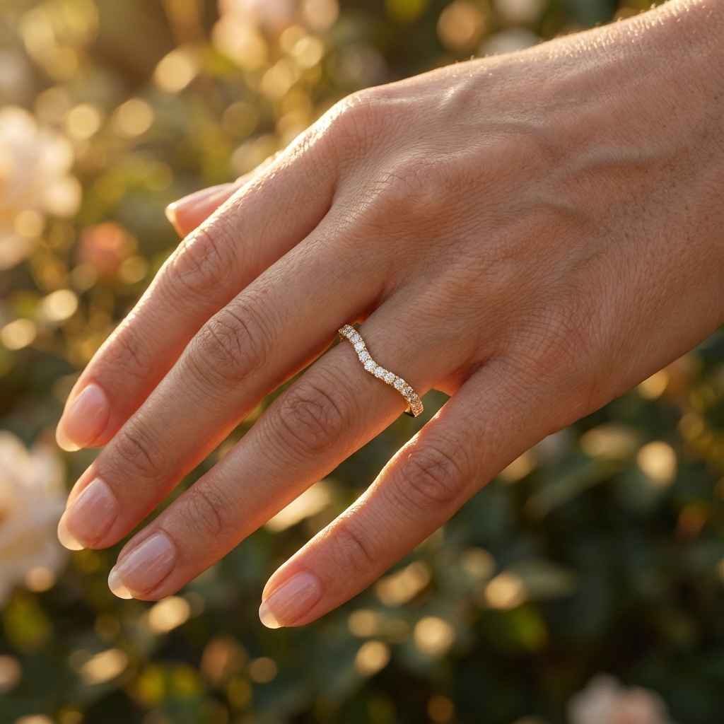 What sets this piece apart is our proprietary 18K Silver alloy. Composed of 75% pure silver, this metal is specifically engineered to provide the high-tensile strength required to secure lab-grown diamonds—offering a much safer and more durable setting than standard 925 sterling silver. The fluid, curved silhouette is designed to contour beautifully against an engagement ring or shine as a sophisticated standalone piece. Enjoy the authentic look, weight, and feel of yellow gold paired with the world’s most advanced silver alloy.