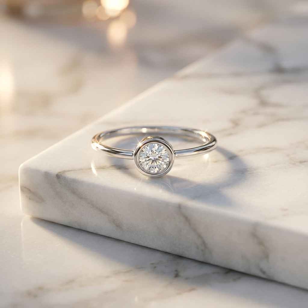 Timeless sophistication meets modern durability in our 0.50 ctw Bezel-Set Solitaire Ring. Featuring a brilliant round-cut IGI Certified CVD Diamond with exceptional EF color and VS1 clarity, this ring is designed for a lifetime of wear.