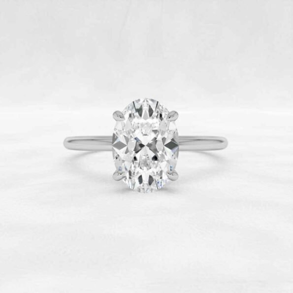 This classic solitaire setting features a delicate, high-polish band, ensuring the magnificent diamond is the sole focus. The simple four-prong design securely cradles the stone while allowing maximum light to enter, enhancing its sparkle. Handcrafted in your choice of 10K, 14K, or 18K White, Rose, or Yellow Gold, this 2 carat oval diamond ring is a perfect symbol of enduring love and sophisticated taste.