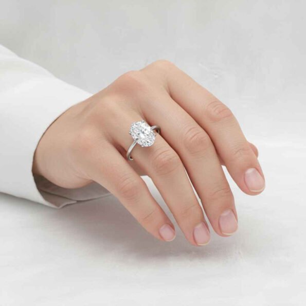 This description highlights the large carat size and quality, emphasizes the fashionable and finger-flattering look of the oval cut, and uses strong keywords like oval cut, solitaire engagement ring, and 2 carat diamond.