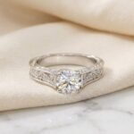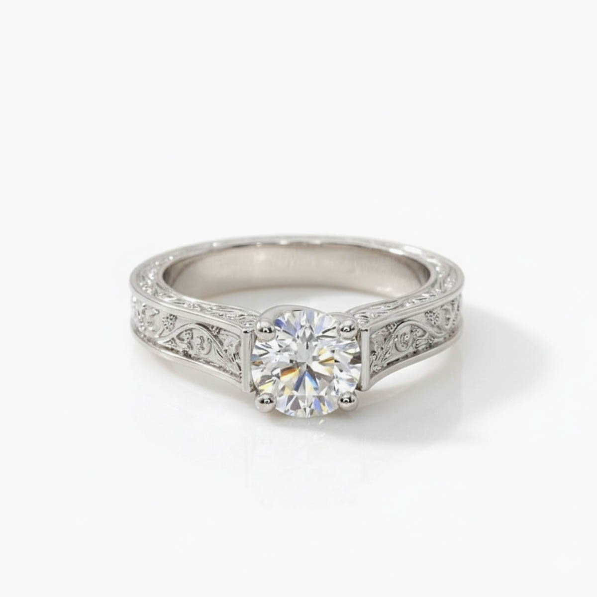 2.00 ctw Round Lab Grown Diamond Hand Engraved Engagement Ring 10K White Gold IGI Certified