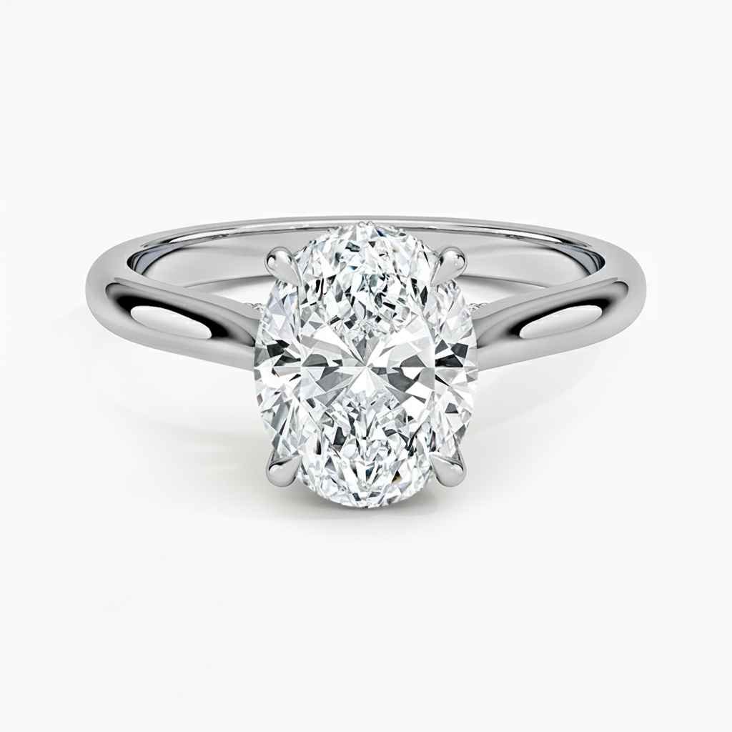 2.10 Carat Oval Hidden Halo Engagement Ring F/VS1 IGI Certified in 14K Yellow Gold