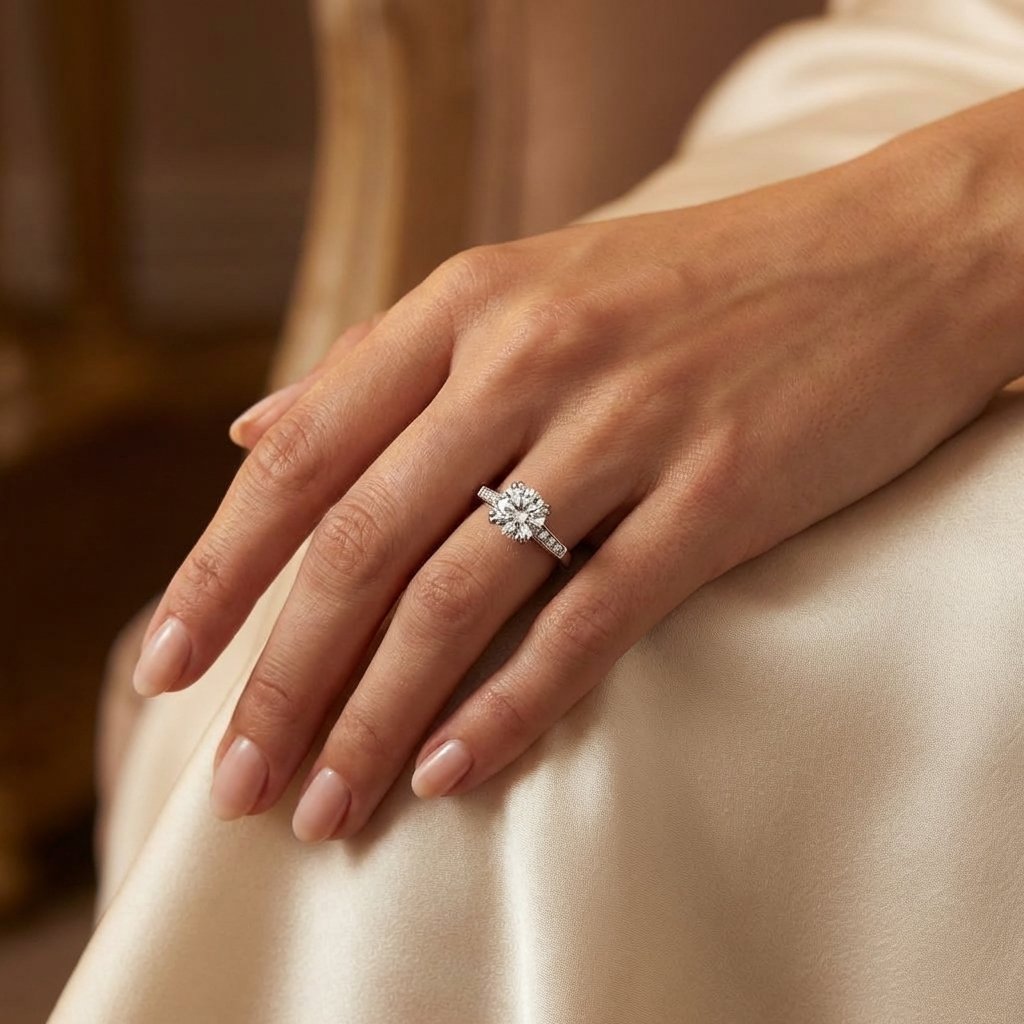 2.10 ctw Round cut Lab Grown Diamond Bar Accent Engagement Ring 14K White Gold IGI Certified