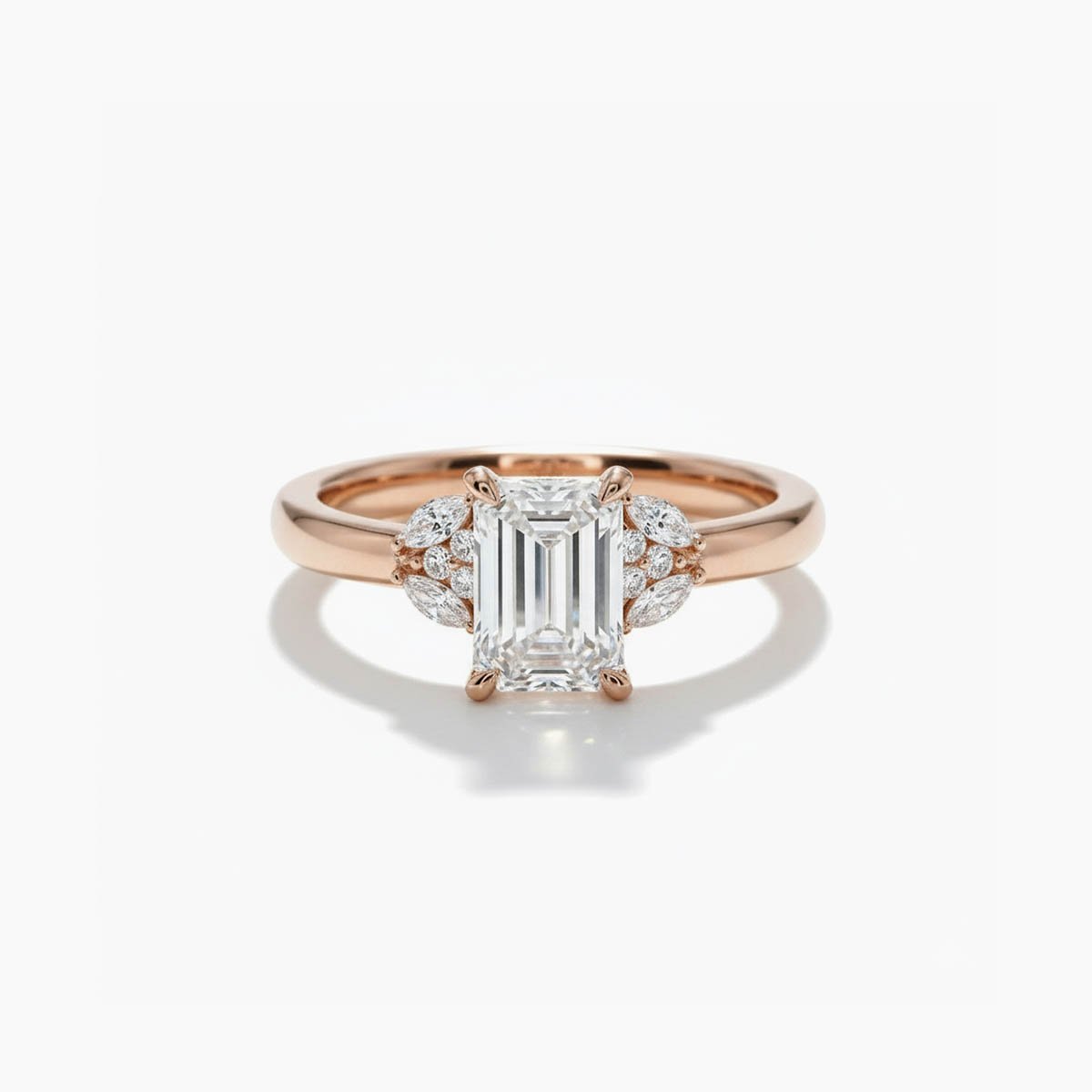 2.20 ctw Emerald cut Lab Grown Diamond Marquise Cluster diamonds Engagement Ring 14K Rose Gold IGI Certified