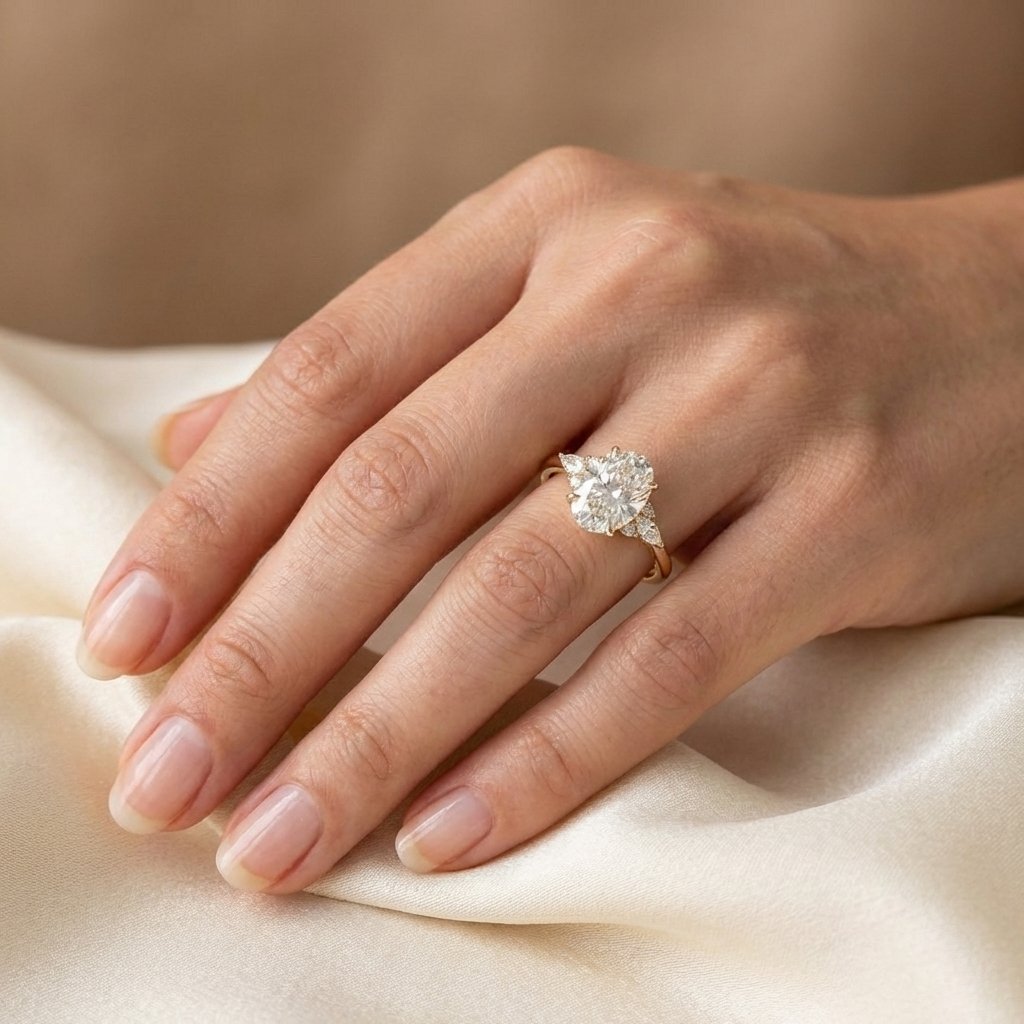• Center Stone: 3.32 ctw Oval Cut Lab Grown Diamond (CVD/HPHT)