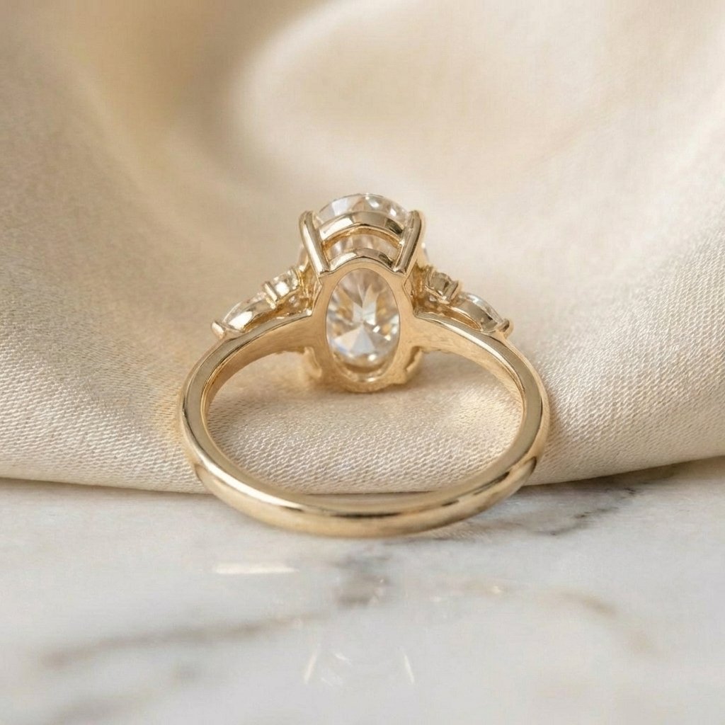 The center oval is beautifully flanked by a sophisticated cluster of marquise and round-cut diamonds (0.36 ctw), creating a unique “bloom” effect on the finger. Whether crafted in solid 10K/14K Gold or high-quality 925 Sterling Silver, this ring offers a high-profile, luxurious look without the traditional environmental impact.