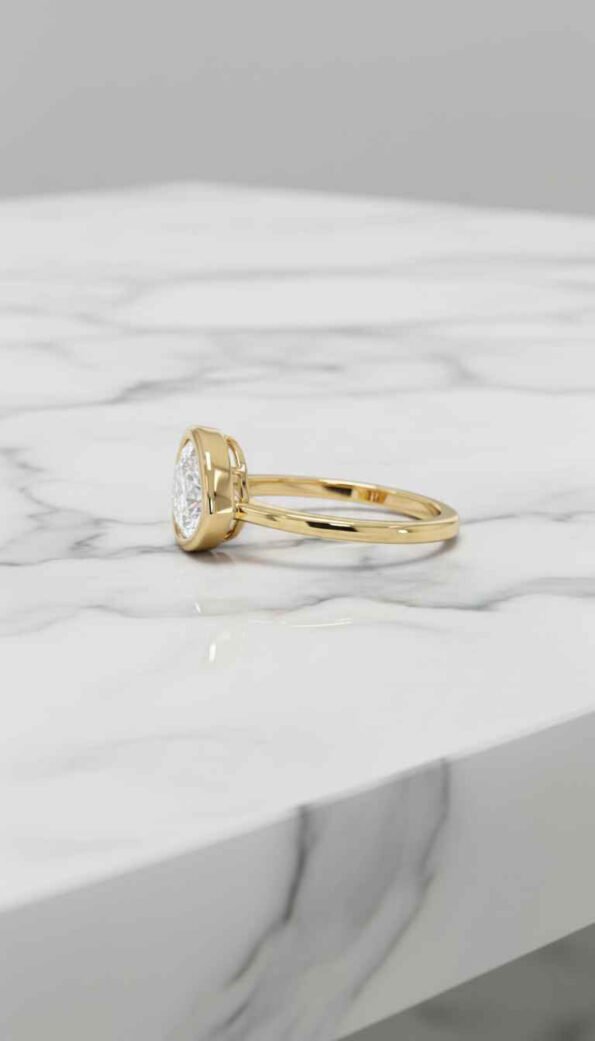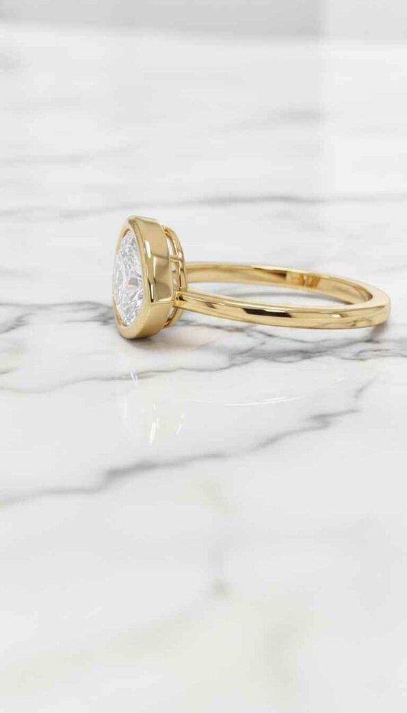 3.50ct Pear Cut Bezel Set Solitaire Diamond Engagement Ring (10K/14K/18K Gold)