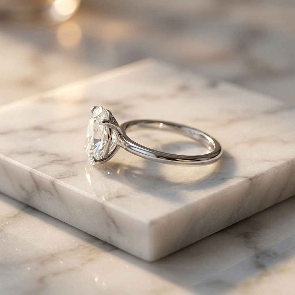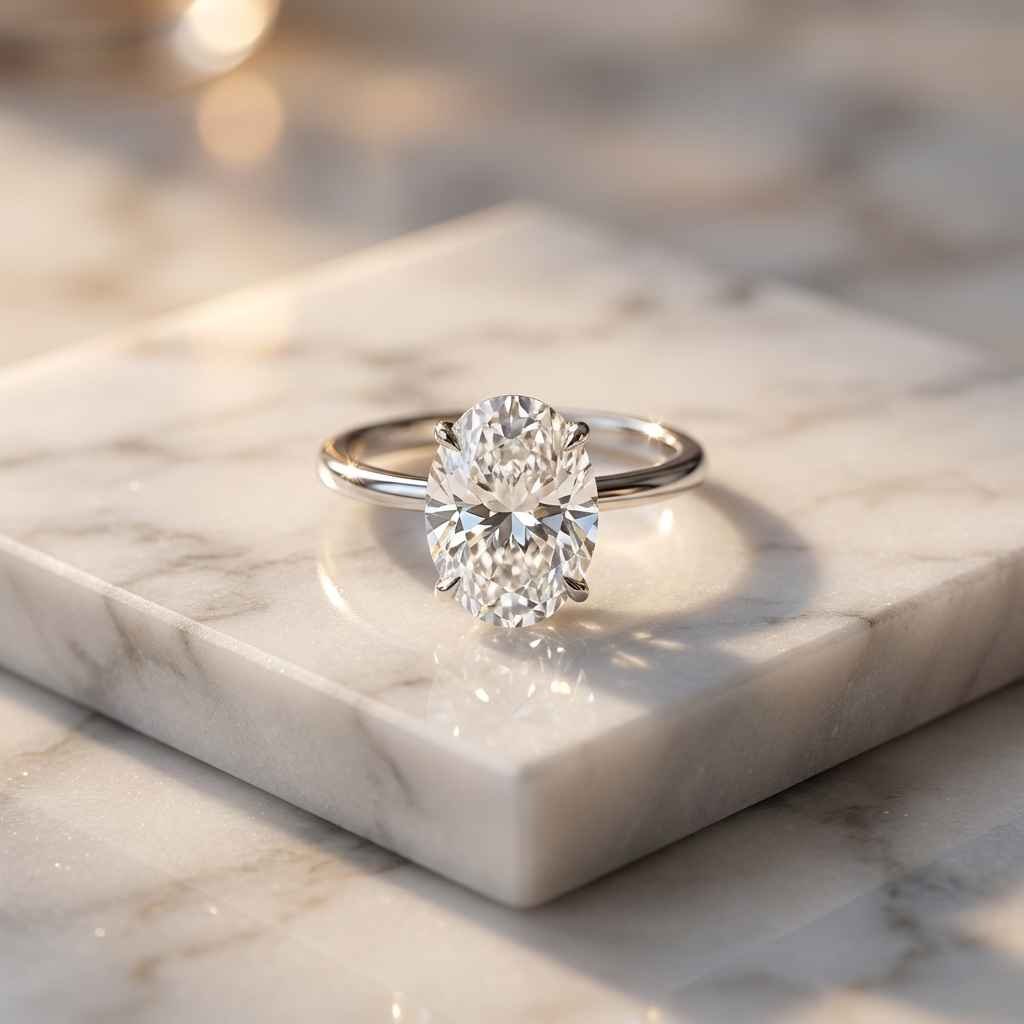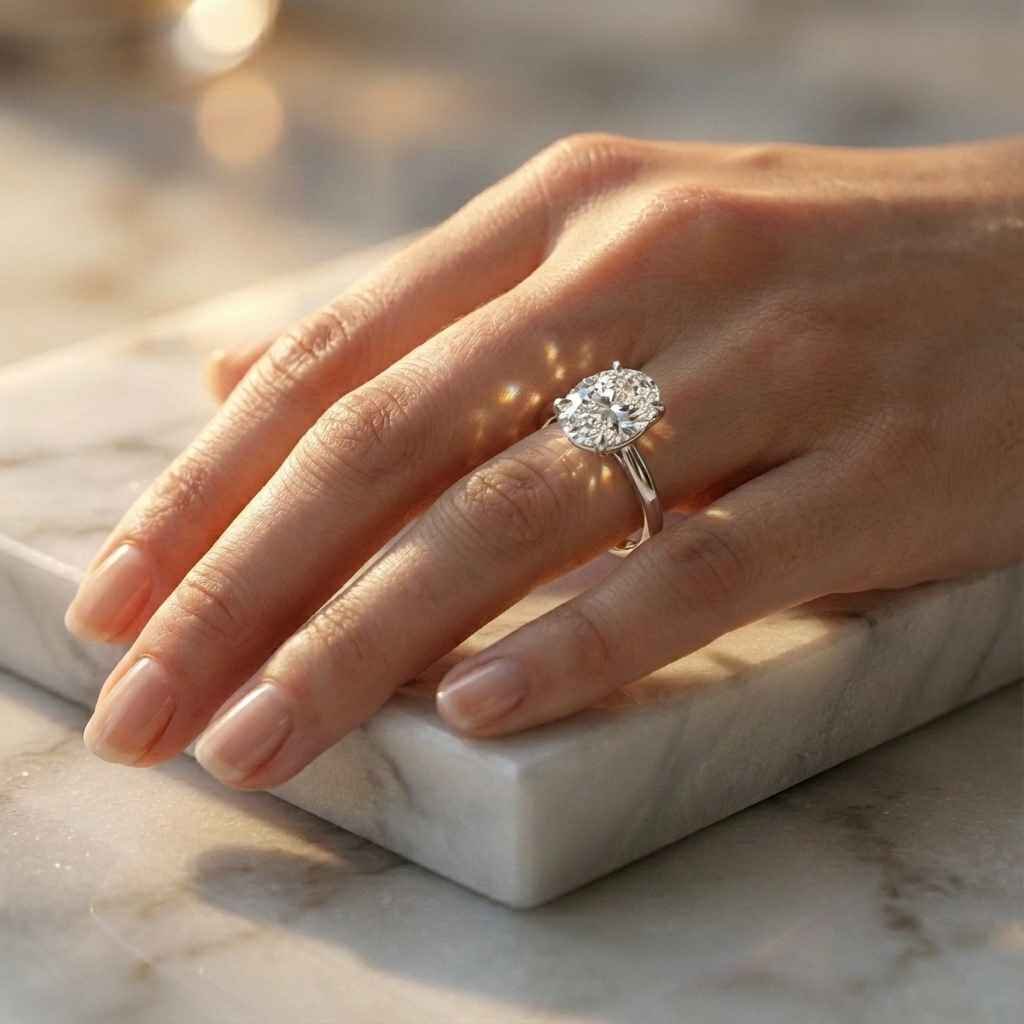 3 Carat Oval Lab Grown Diamond Engagement Ring in 10K/14K/18K Gold | IGI Certified Minimalist Prong Setting