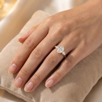 This 1.50ct elongated cushion cut lab-grown diamond ring offers a unique blend of timeless brilliance and contemporary elegance. Surrounded by a halo of pavé-set diamonds, the center stone is beautifully showcased in a sleek 4-prong setting on a polished 18K white gold band. Available in 10K, 14K, and 18K gold with SGL certification (IGI upon request), this ethically crafted ring is ideal for brides who desire bold sophistication with sustainable luxury.