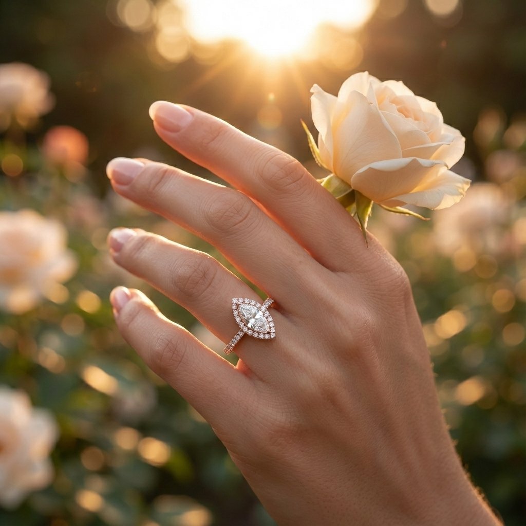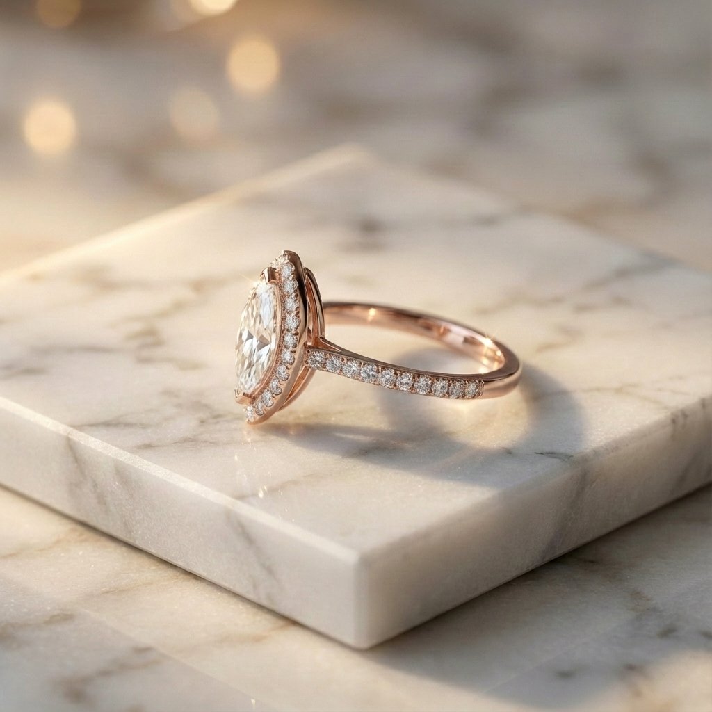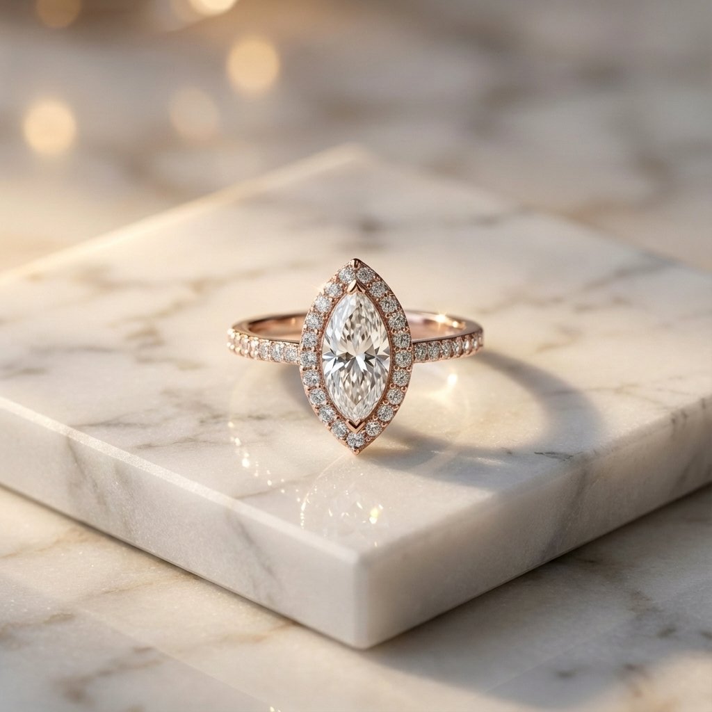 Marquise Cut 1.50ct EF VS1 Certified CVD Lab Diamond Halo Ring in 18K White Gold – Classic Solitaire Design IGI Certified