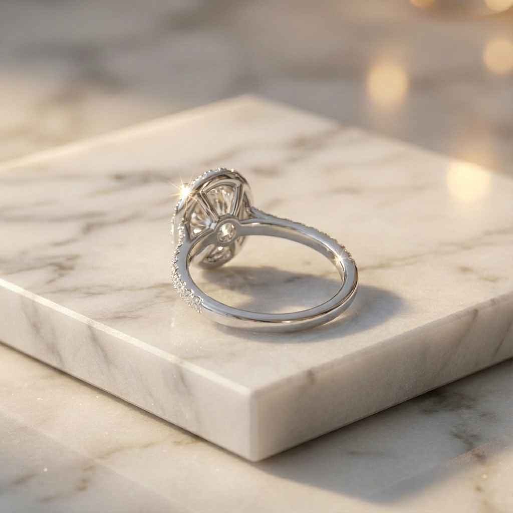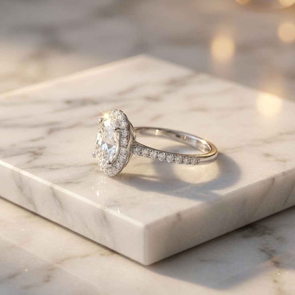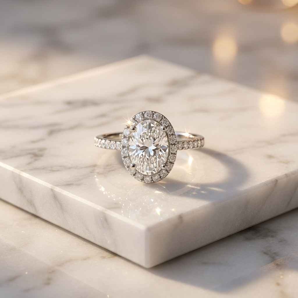 Oval Cut 2.50ct EF VS1 Lab-Grown Diamond Halo Ring in 18K White Gold – Classic Plain Shank Engagement Ring IGI Certified