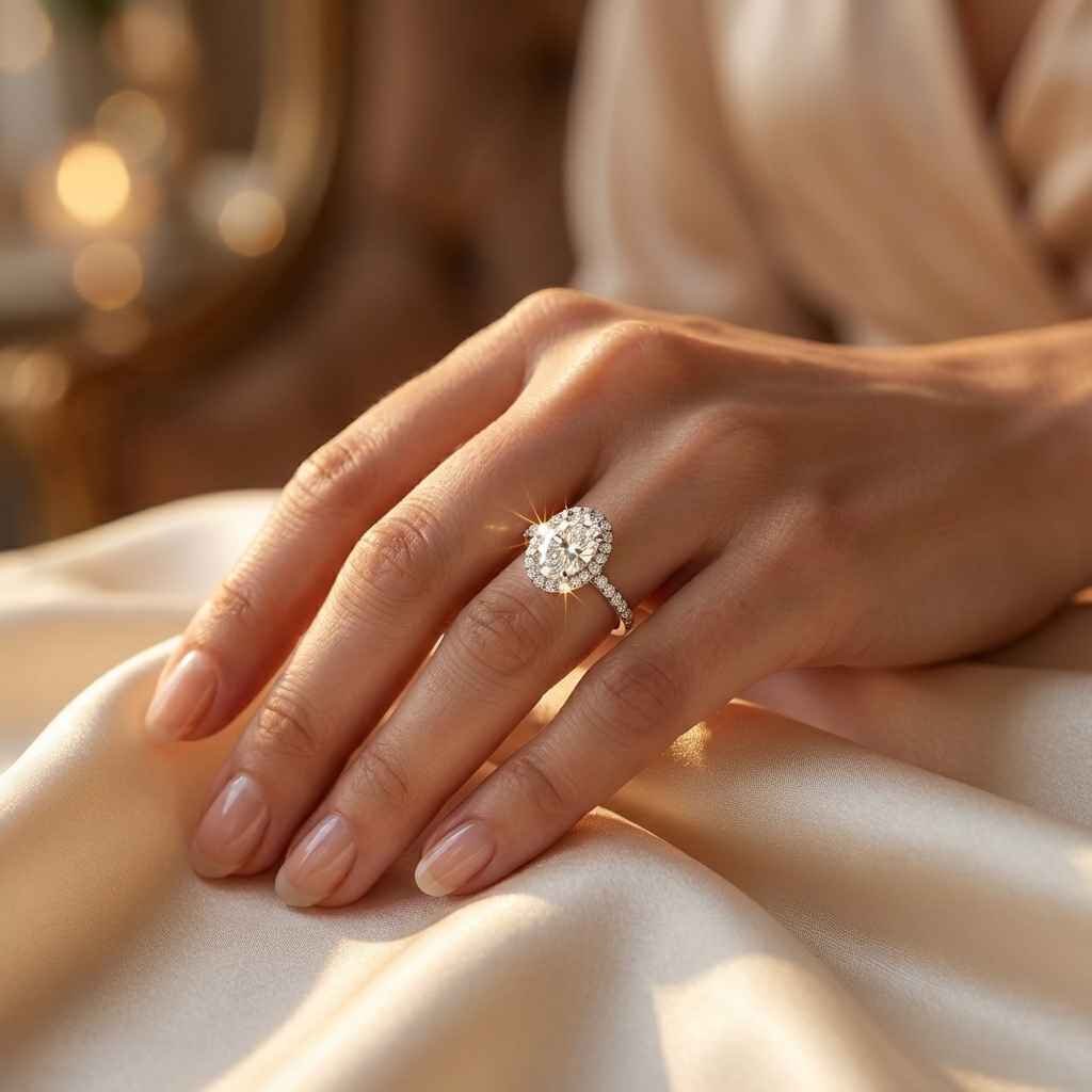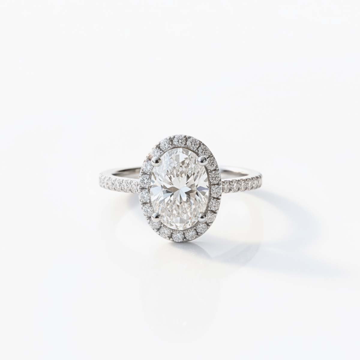 Oval Cut 2.50ct EF VS1 Lab-Grown Diamond Halo Ring in 18K White Gold – Classic Plain Shank Engagement Ring  IGI Certified