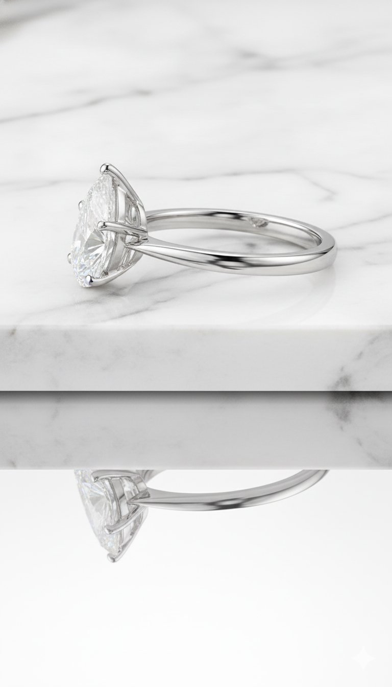 Graceful and captivating, this 2.50ct pear cut lab-grown diamond ring features a teardrop-shaped stone that elongates the finger and offers unmatched brilliance. Set in a classic 5-prong solitaire setting and crafted in polished 18K white gold, it brings timeless charm with modern ethics. Available in 10K, 14K, or 18K gold and SGL certified (IGI upon request), this ring is ideal for women seeking bold elegance and sustainable luxury.
