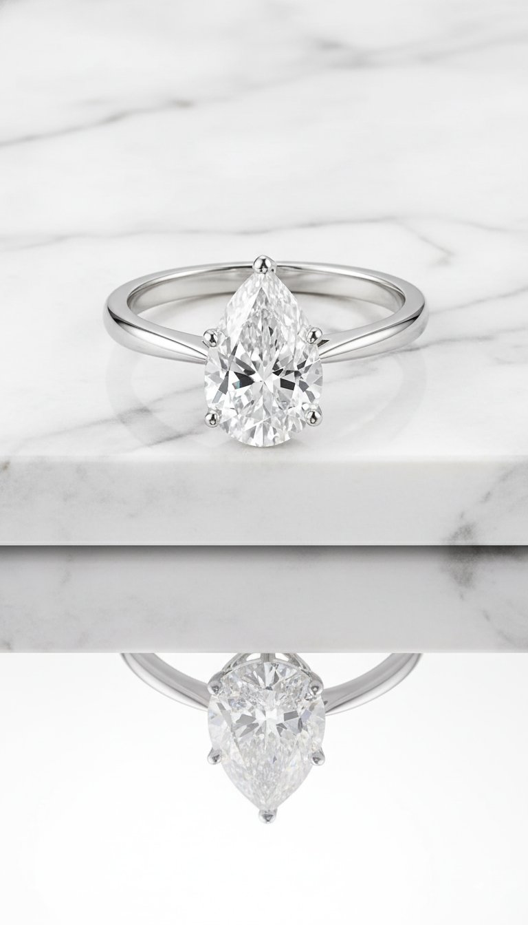 Pear cut lab-grown diamond solitaire ring in white gold – elegant front view with prong setting