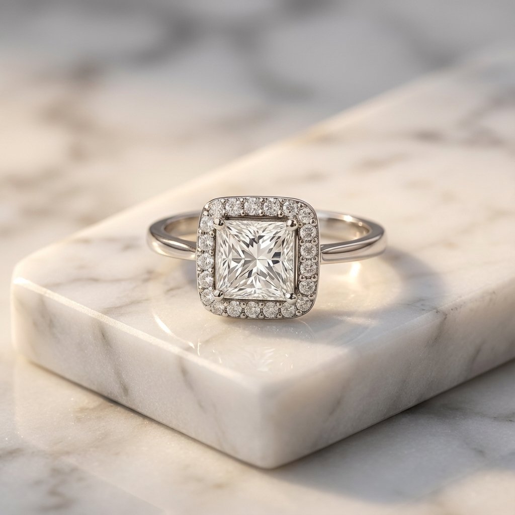 Princess Cut 1.50ct EF VS1 Certified CVD Lab Diamond Halo Ring in 18K White Gold – Classic Engagement Ring IGI Certified