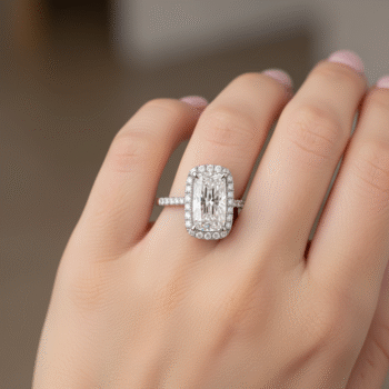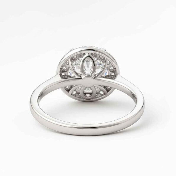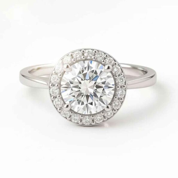 Brilliant and timeless, this 1.50ct round cut lab-grown diamond halo ring radiates elegance. The center diamond is framed by a perfect halo of round accent stones, enhancing the overall sparkle and visual impact. Set in a secure 4-prong halo setting with a polished straight shank, this ring is crafted in 18K white gold and available in 10K, 14K, and 18K gold options. Ethically sourced and certified by SGL (IGI available on request), it’s the ideal engagement ring for women who seek both luxury and sustainability.
