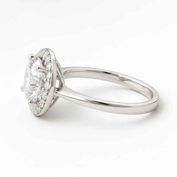 Round Cut 1.50ct EF VS1 Certified CVD Lab Diamond Halo Ring in 18K White Gold – Classic Engagement Ring