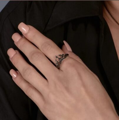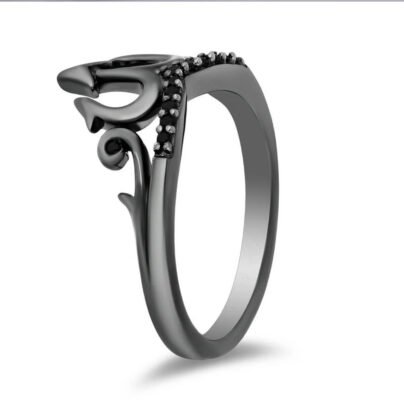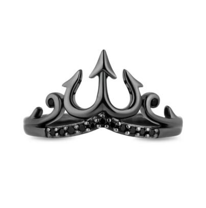 Enchanted Disney Fine Jewelry Black Rhodium over Sterling Silver with 1/10 CTTW Black Moissanite Ursula Trident Ring