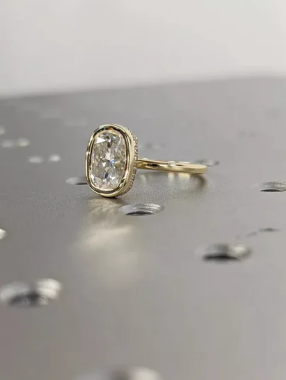 Be the first to review “Hidden Halo Bezel Set Sterling Silver Cushion Cut Moissanite Engagement Ring” Cancel reply